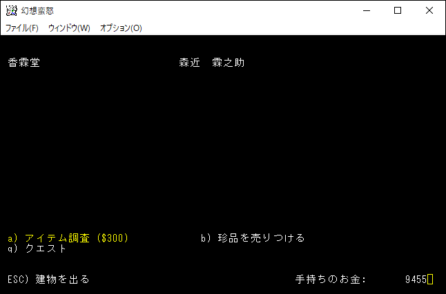 一番の戦利品は殺されずに済んだ命だった。そんなわけで霖之助にクエスト達成の報告をします。とくに後日談などは無く、霖之助からの言葉は「お疲れさま」の一言だった。なんだよ!てめえふざけんな!*鑑定*の魔法を覚えたらもう来ないからな。
