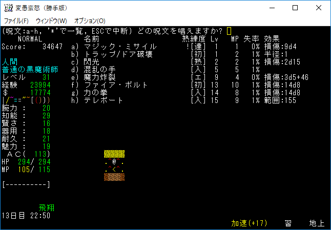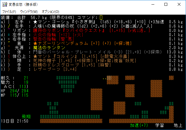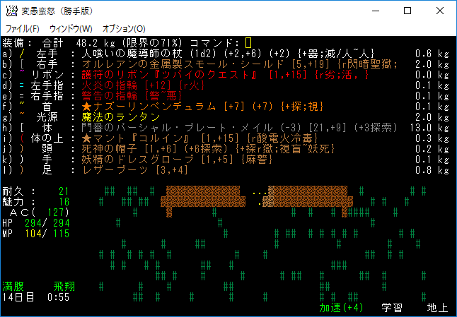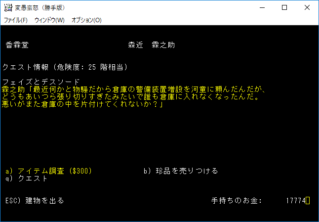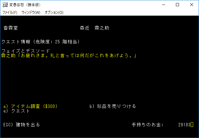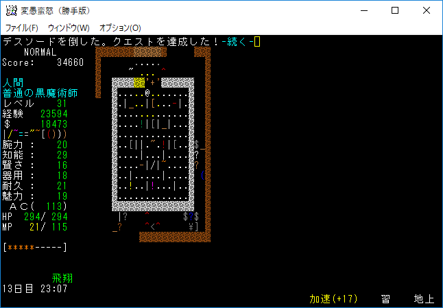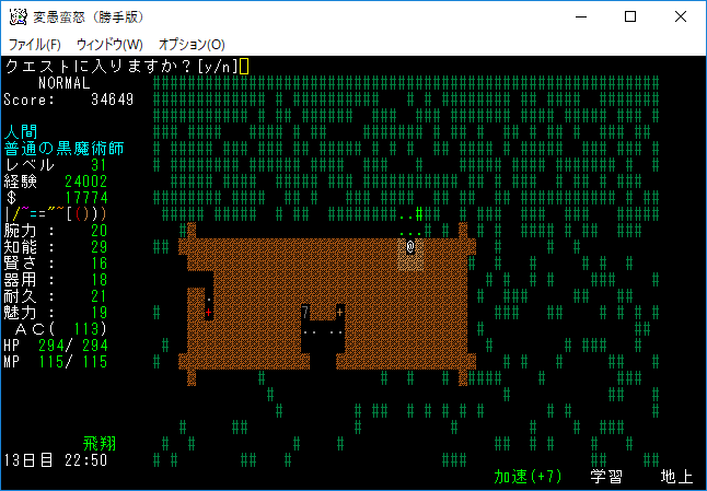 おはようございます。変愚蛮怒東方Project勝手版のプレイ日記を始めます。今回は『フェイズとデスソード』のクエストに挑戦をします。鉄獄地下24階ランダムクエストは次回やろう。まずは難易度の低いクエストを消化するのです。
