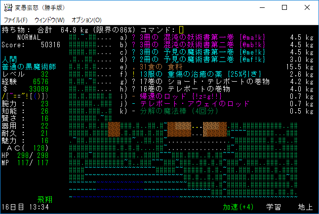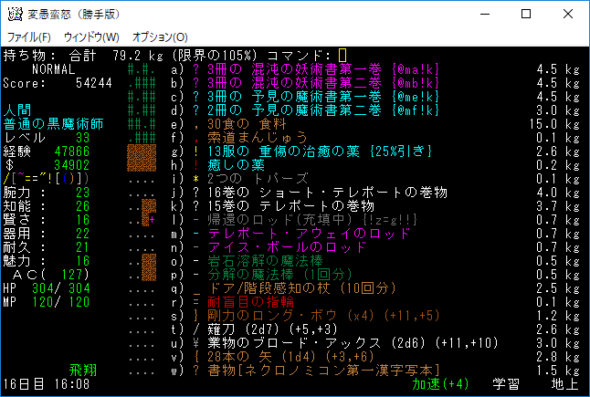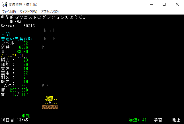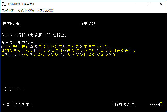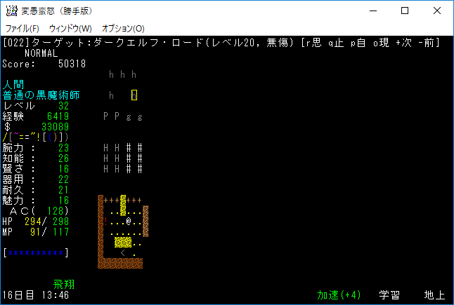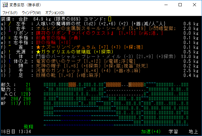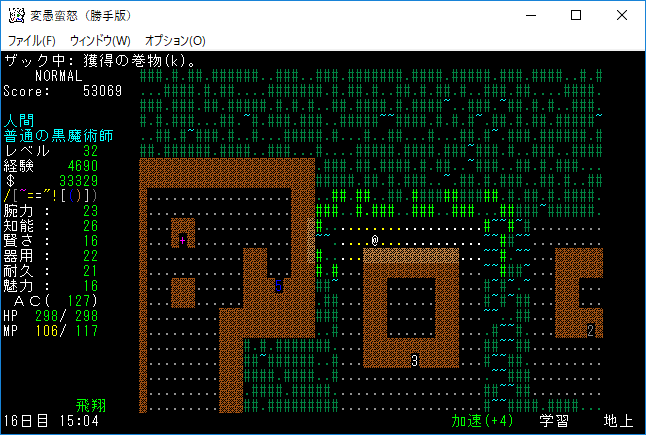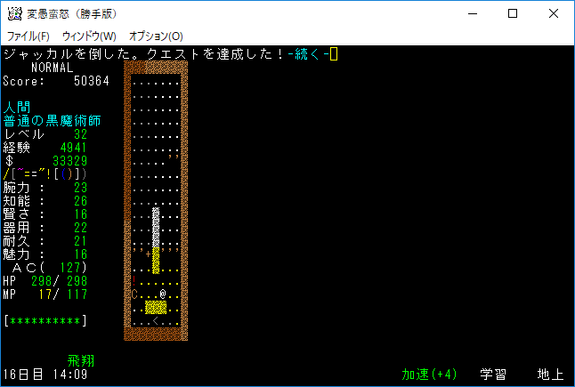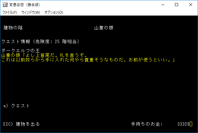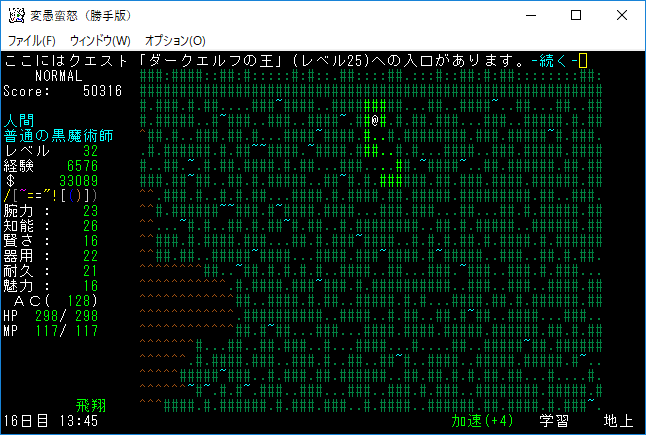おはようございます。変愚蛮怒東方Project勝手版のプレイ日記を始めます。今回はダークエルフの王クエストに挑みます。★ガラドリエルの玻璃瓶を手に入れましたから報酬は獲得の巻物になったはずです。アーティファクトの獲得に期待をしましょう。
