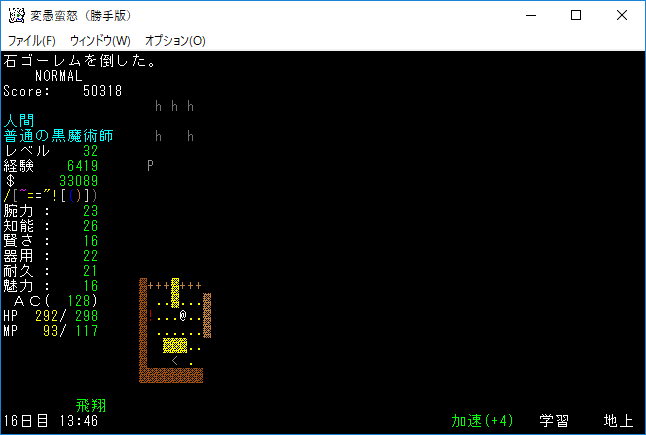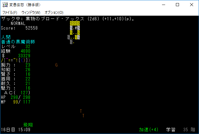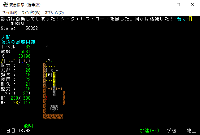 Pとgがいる場所までは魔力炸裂を連打して進み、ダークエルフ・ロードに分解の魔法棒を使います。変なユニークを呼ばれても今の魔理沙ならば大丈夫。むしろドロップが旨くなる。