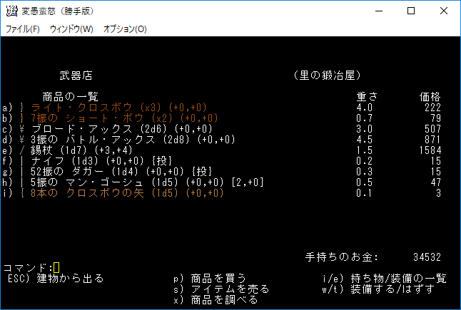 クエストに向かう前に誤って売却をした水龍のナイフを探します。もう店からは消えていましたね。crawlのランダムテレポートが怖すぎたので反射的に売ってしまった。トランプエゴだったら売らなかったのに(泣)。