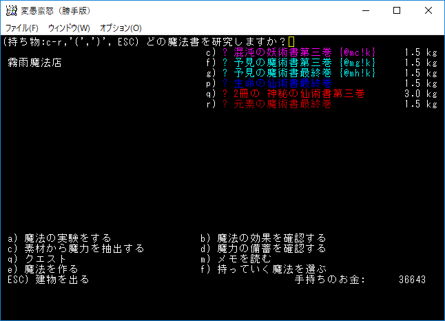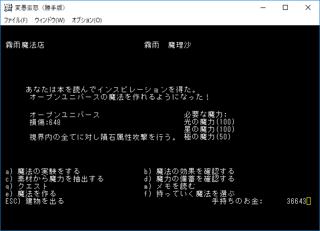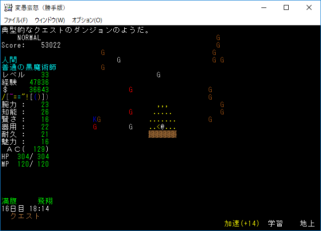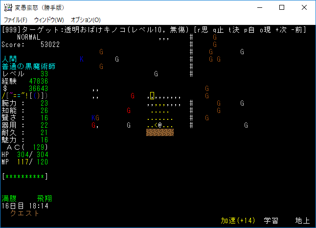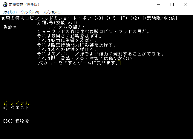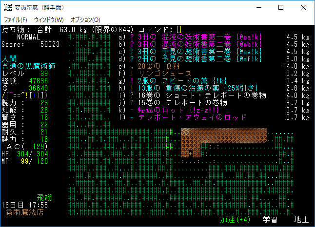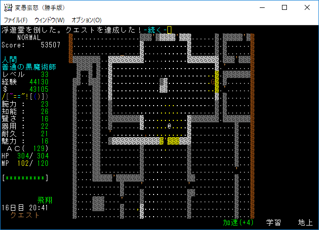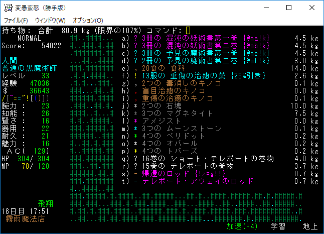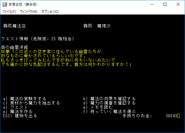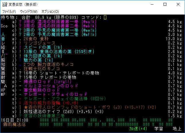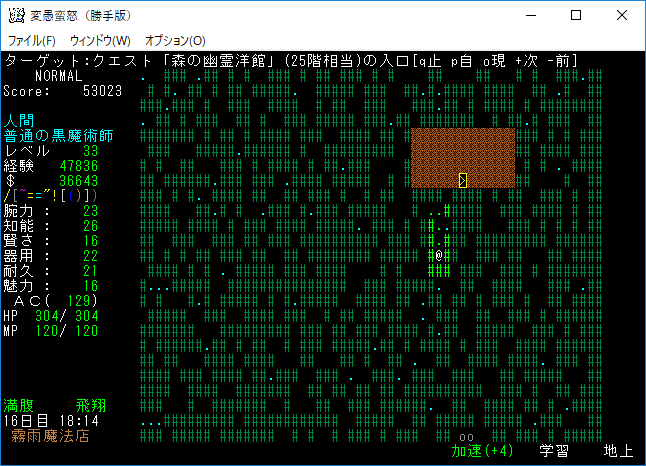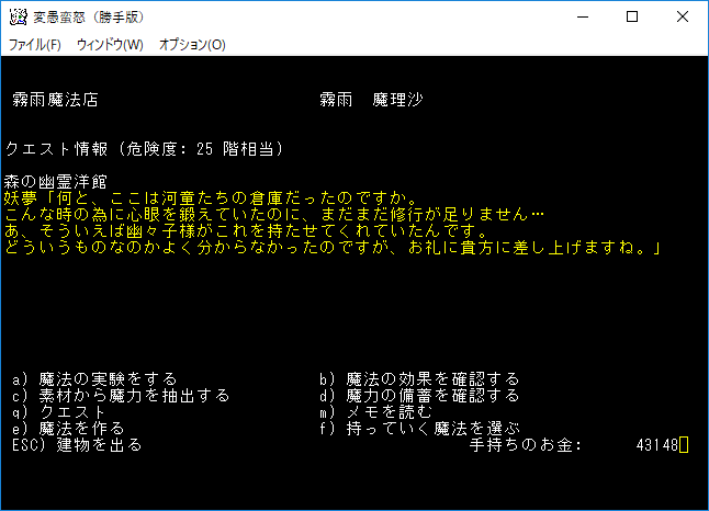 おはようございます。変愚蛮怒東方Project勝手版のプレイ日記を始めます。今回は森の幽霊洋館クエストを達成して全感知のロッドを手に入れます。予見の魔術があれば必要のないアイテムです。たぶん魔法領域を変えるだろうから感知の魔導具は集めておきましょう。