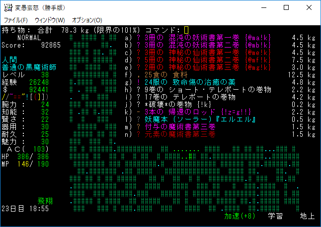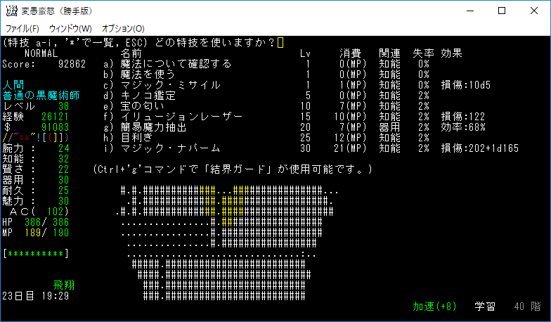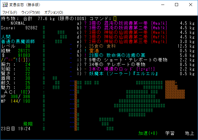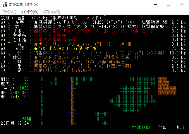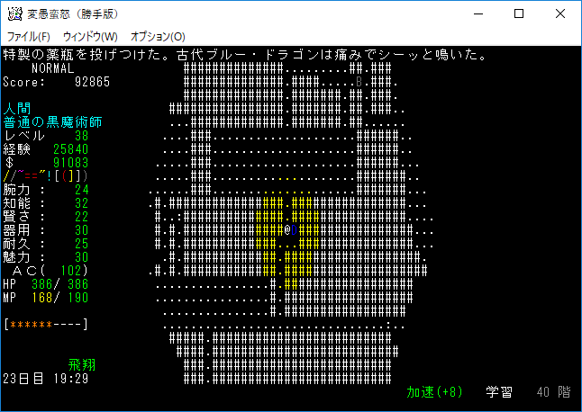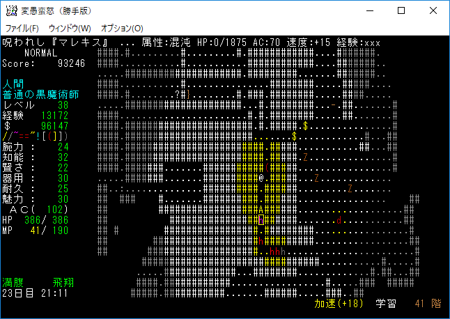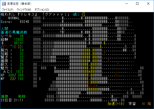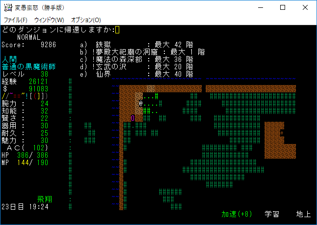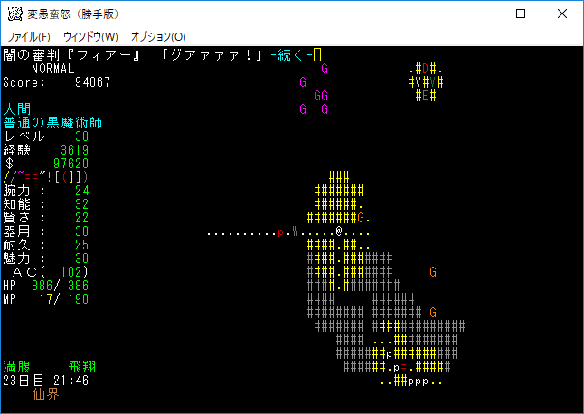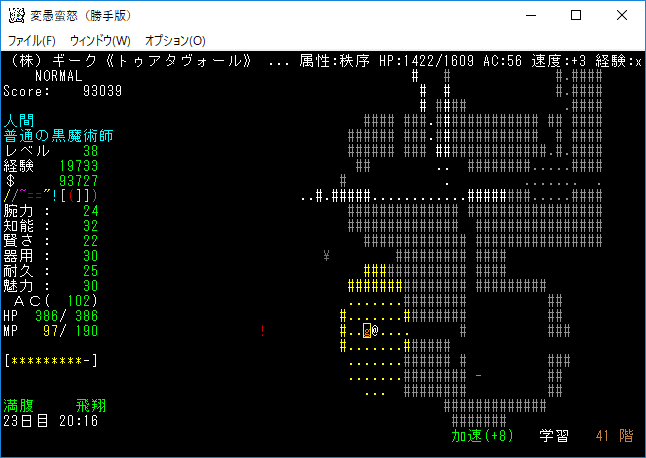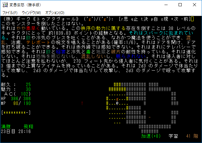 おはようございます。変愚蛮怒東方Project勝手版のプレイ日記を始めます。ダンジョン『仙界』を地下40階まで探索しました。このまま最深階の45階を目指します。