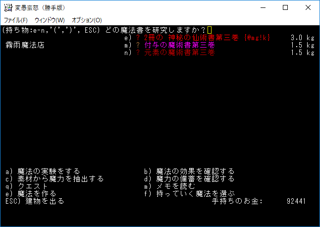 ブラックマーケットで購入をした魔法書をレシピにして自作魔法を作ります。付与と元素の3冊目だね。霧雨魔法店に行きましょう。