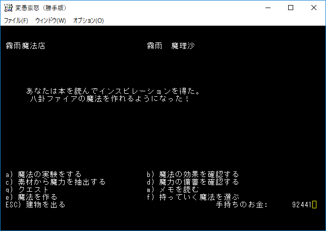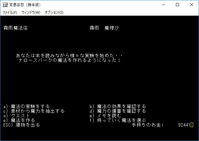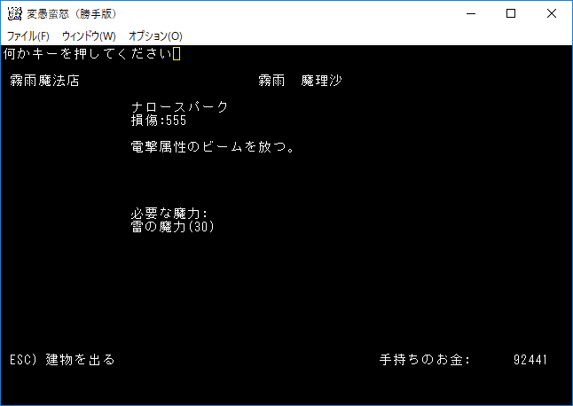 マジック・ナパームの威力と成功率が上がってきました。MP全快の状態ならば自作魔法なしでもユニークを倒せるぞ。その後はガス欠で大変な事になるけど(笑)。