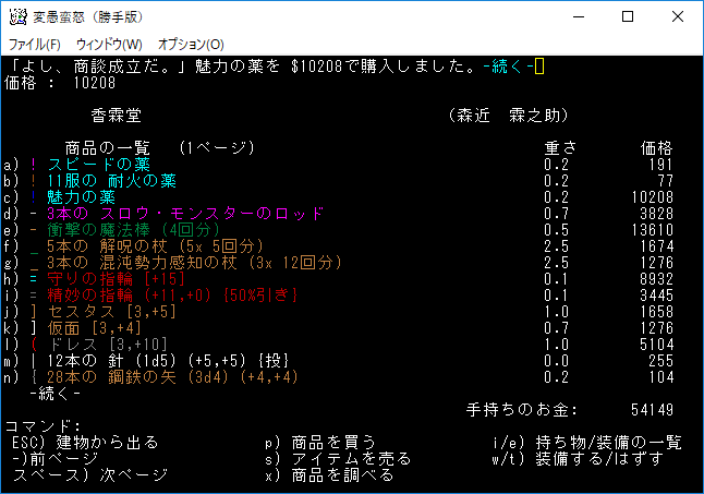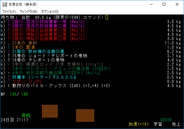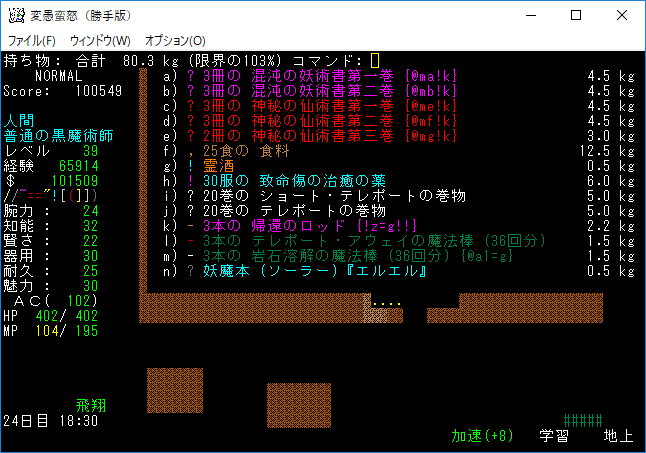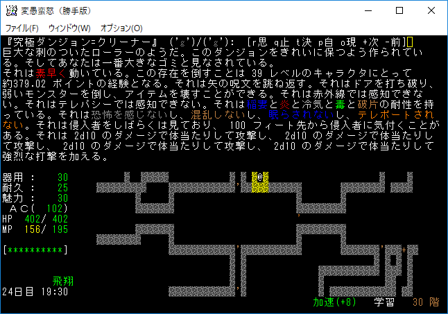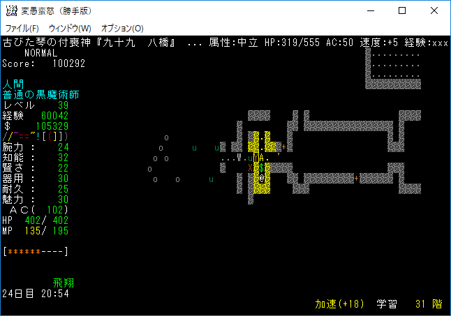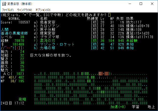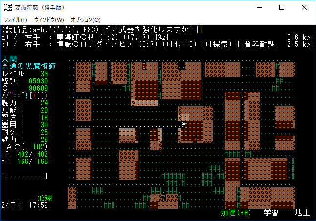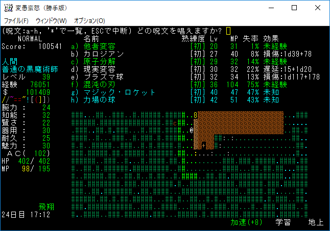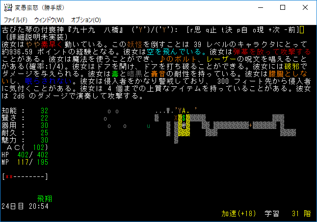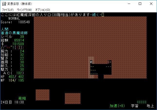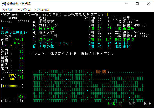 おはようございます。変愚蛮怒東方Project勝手版のプレイ日記を始めます。今回からダンジョン『紅魔館深部』の探索を開始します。召喚魔法を唱える強敵が増えてきました。まずは魔法を学習しよう。