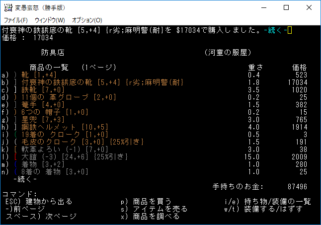 いらないかもと思いつつカオス耐性つきのクロークを購入。金が無くなってきた。