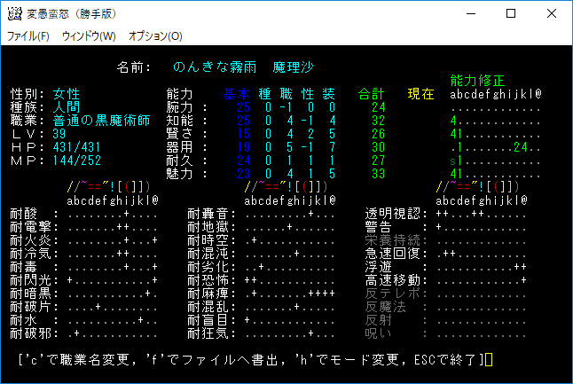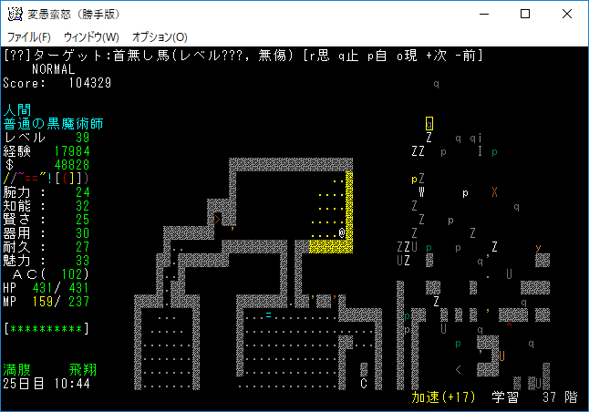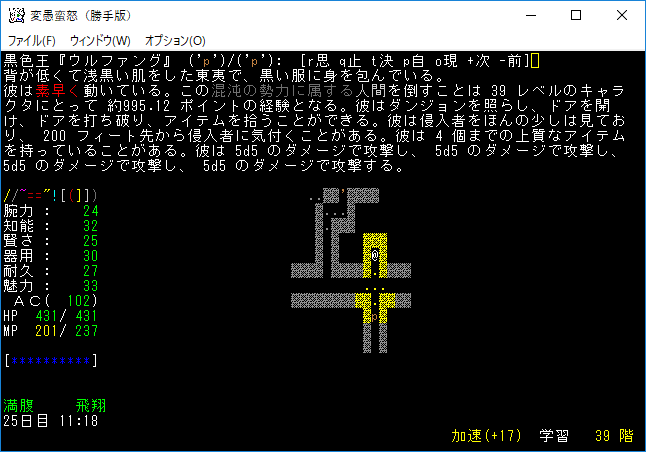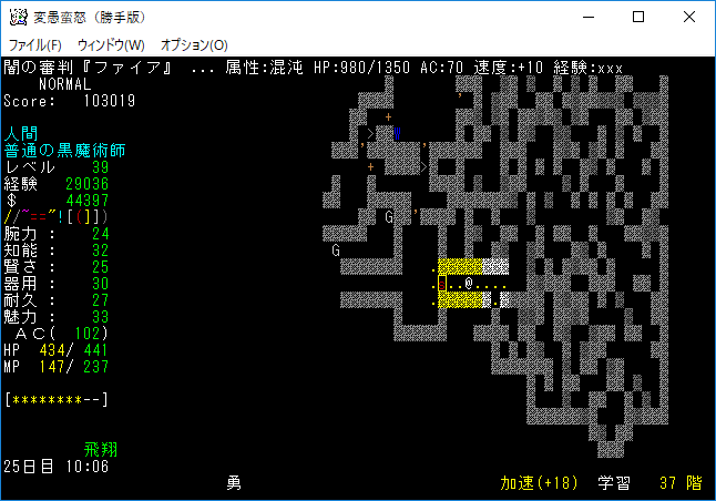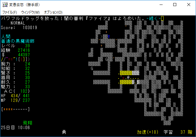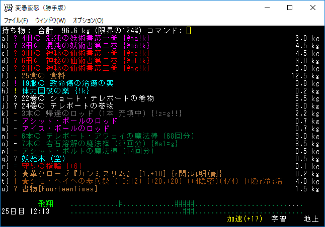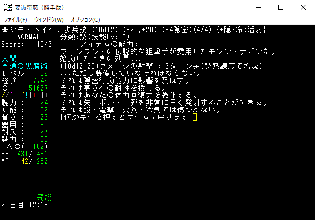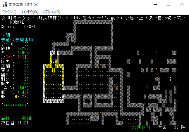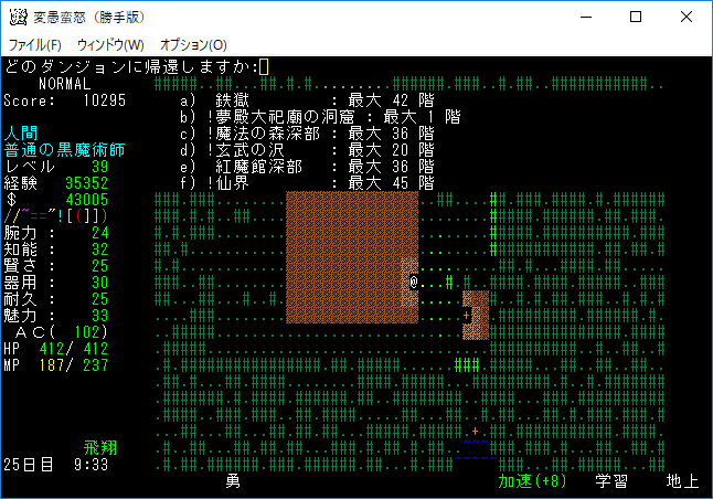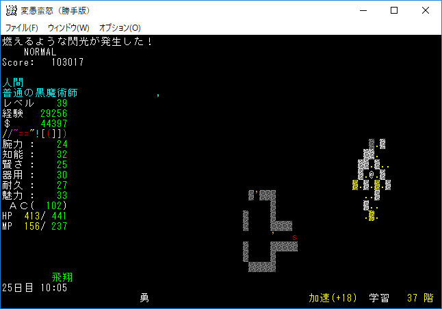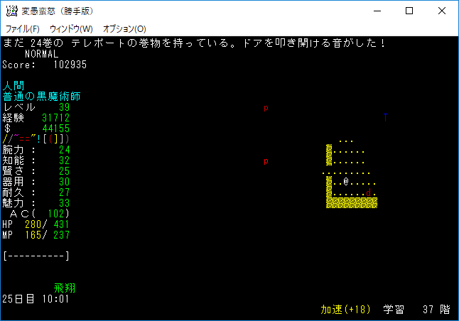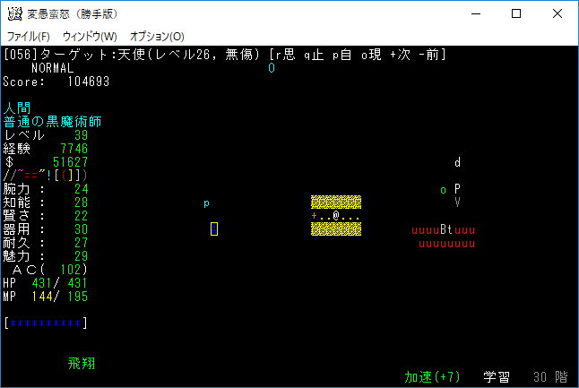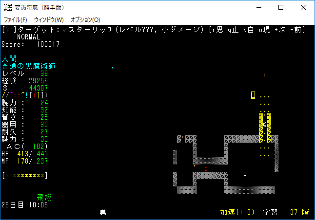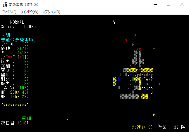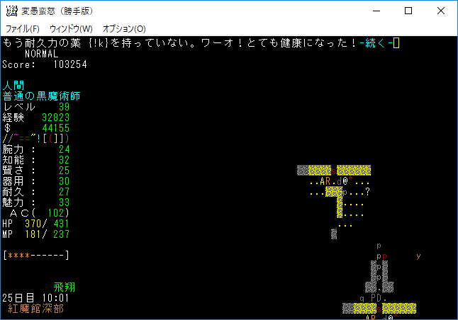 おはようございます。変愚蛮怒東方Project勝手版のプレイ日記を始めます。前回は紅魔館深部の36階まで進んだのかな?どんどん潜っていきましょう!