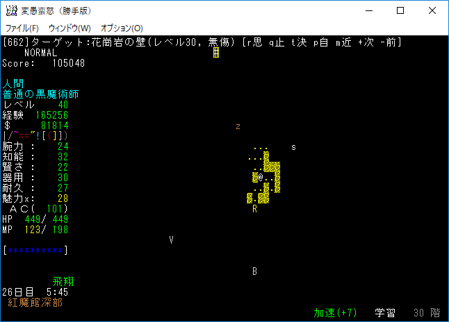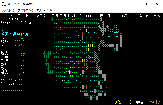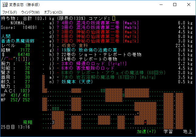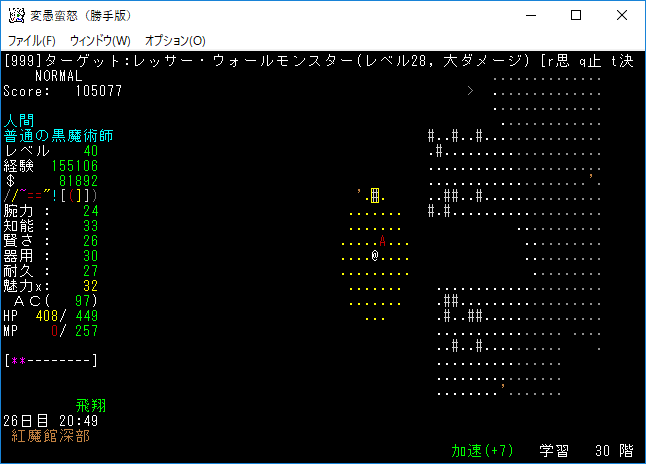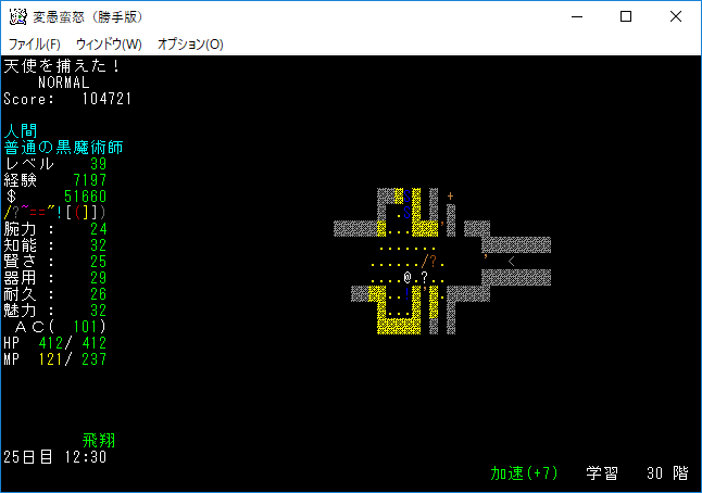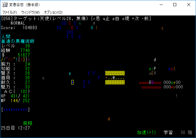 おはようございます。変愚蛮怒東方Project勝手版のプレイ日記を始めます。『紅魔館深部』39階まで攻略をするも配下のソーラーを*破壊*。新たに天使を捕獲してソーラーに育てます。