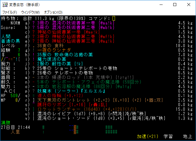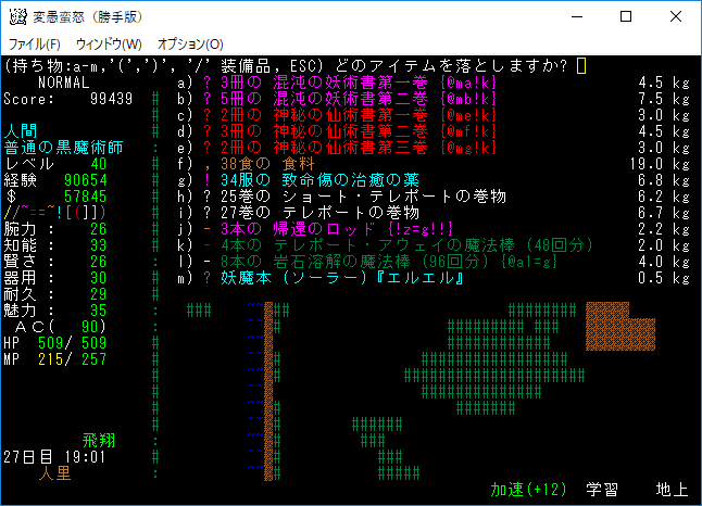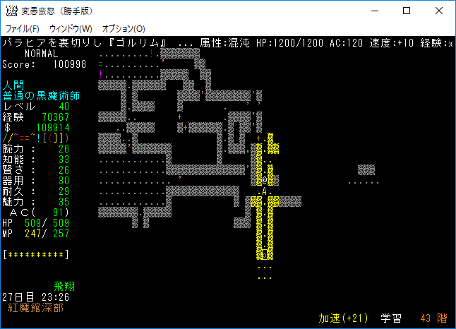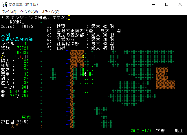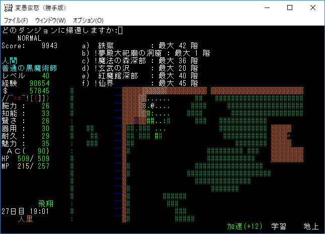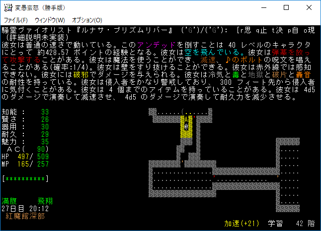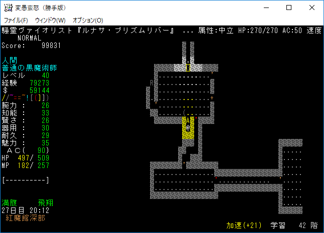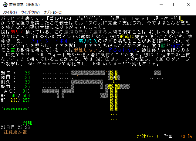 おはようございます。変愚蛮怒東方Project勝手版のプレイ日記を始めます。事情によりブログの更新に費やせる時間がありません。『紅魔館深部』はゆっくり攻略をします。
