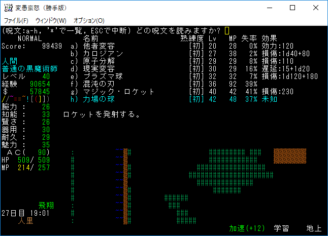 レベルが40になったからマジック・ロケット(混沌3冊目)を学習しました。広範囲にダメージを与える魔法だからユニーク戦で役に立つだろうと思いきや。