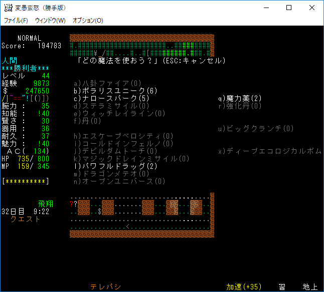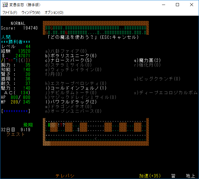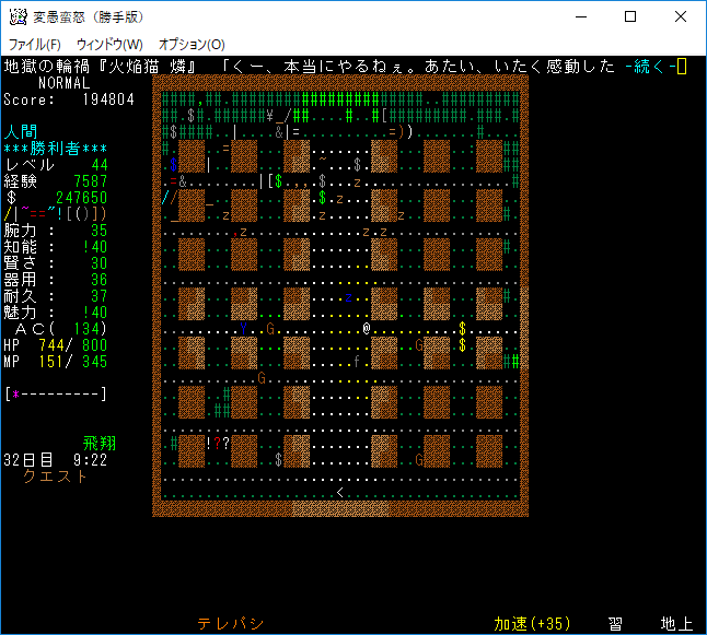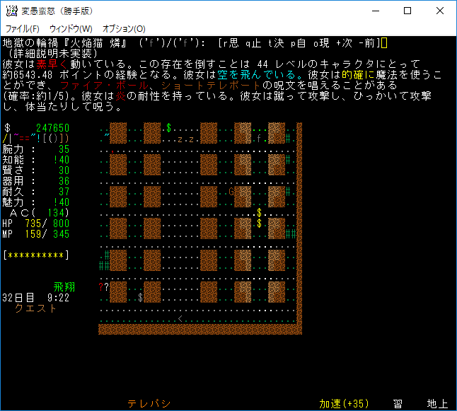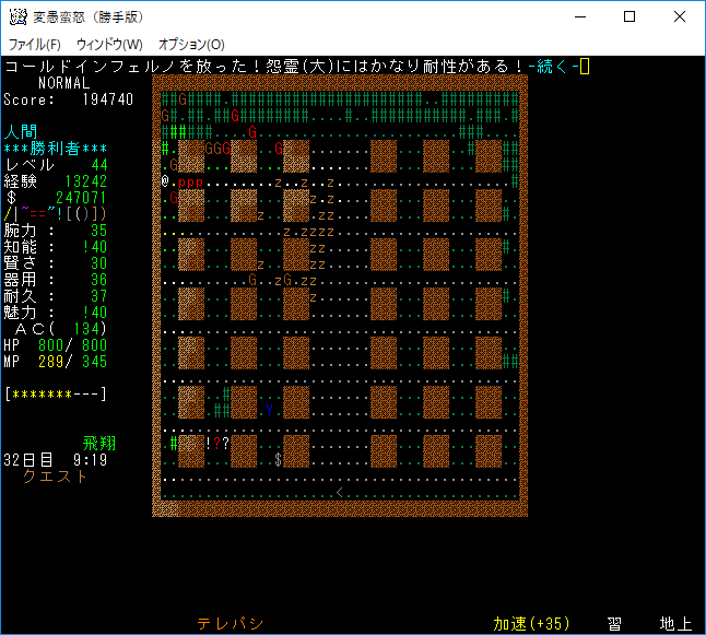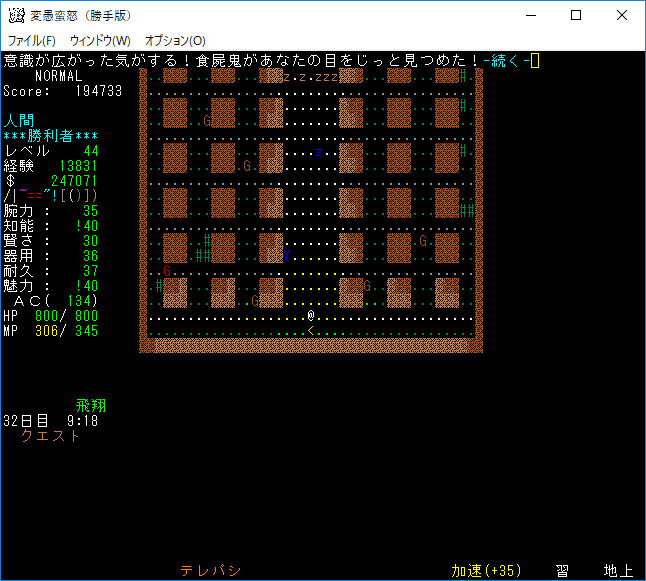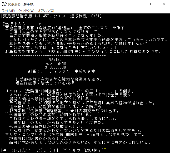 おはようございます。変愚蛮怒東方Project勝手版のプレイ日記を始めます。今回は墓地警備員急募クエストに挑戦をします。