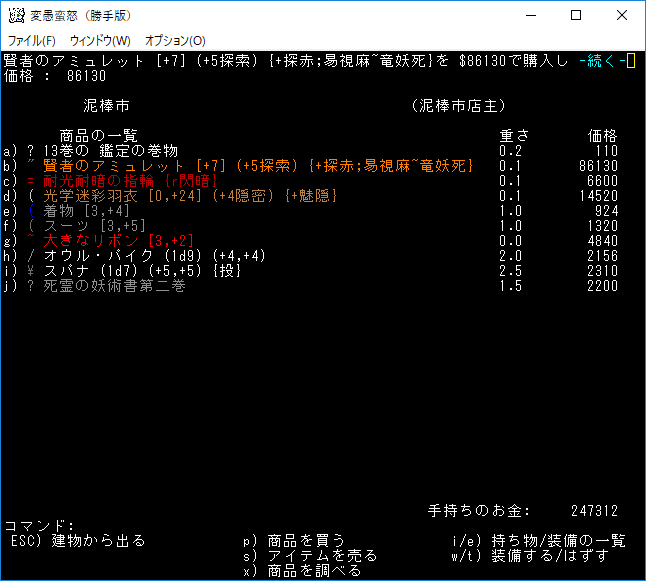 ブラマにて賢者のアミュレットを購入しました。装備をすると魔法の成功率を下げてくれます。珍しい性能だからかっちゃった。