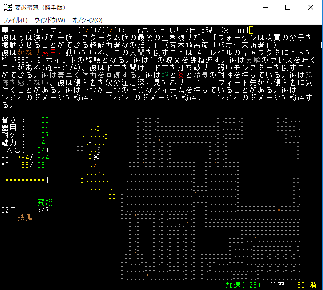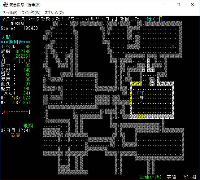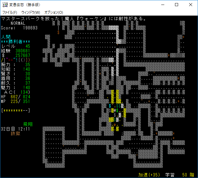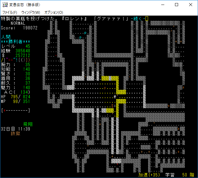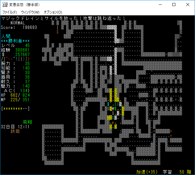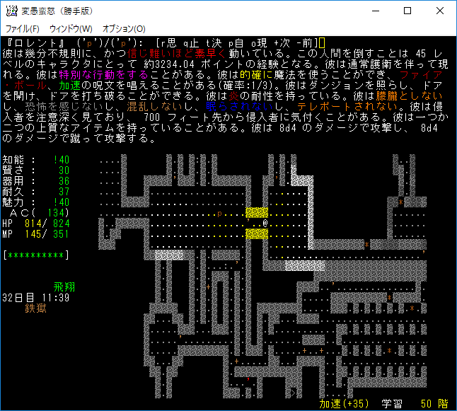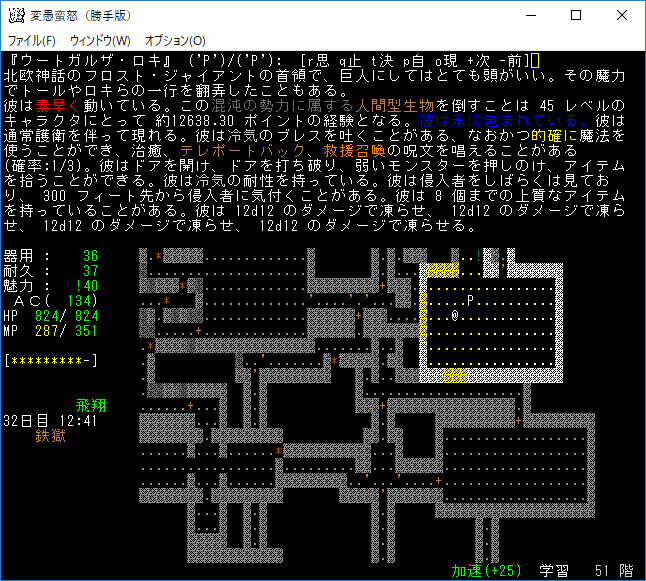 おはようございます。変愚蛮怒東方Project勝手版のプレイ日記を始めます。今回はランダムクエストのために鉄獄をひたすら降ります。次のランクエは56階だったはず。