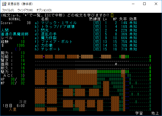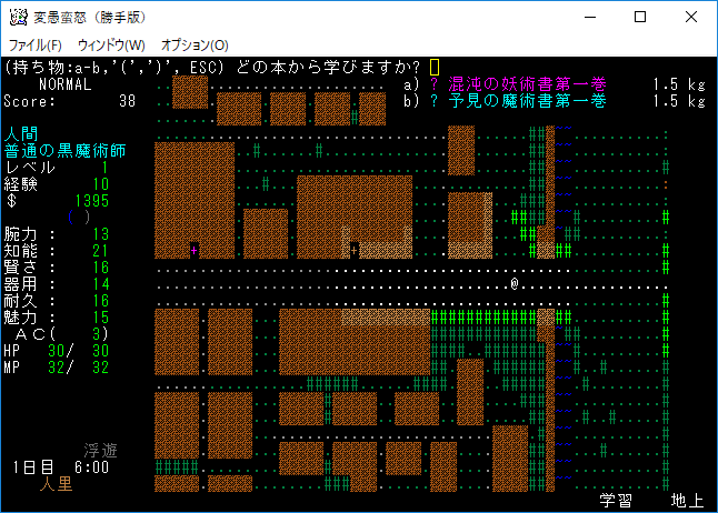 おはようございます。変愚蛮怒東方Project勝手版のプレイ日記を始めます。今回は魔法を覚えてダンジョンを探索しようと考えております。
