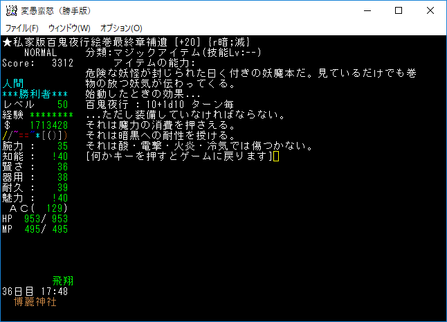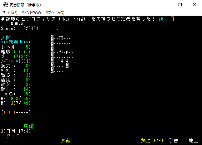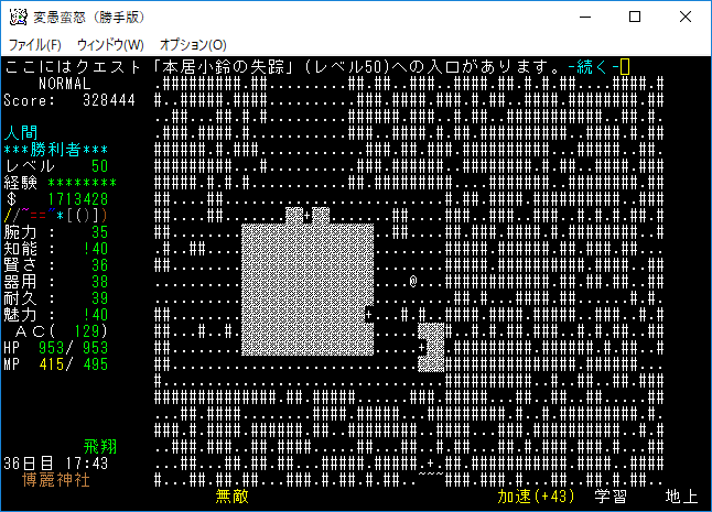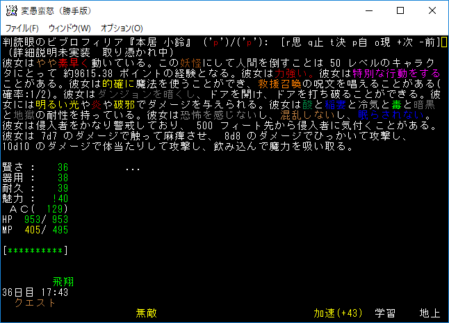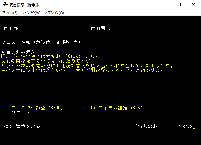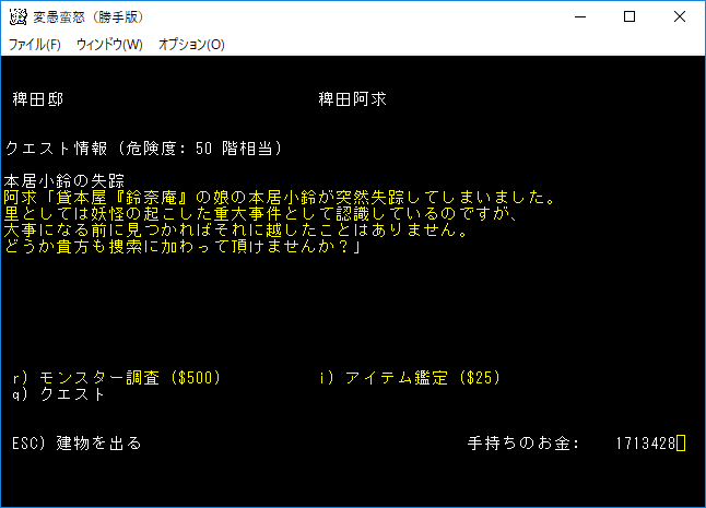 おはようございます。変愚蛮怒東方Project勝手版のプレイ日記を始めます。今回はクエスト『本居小鈴の失踪』に挑戦をしよう。本家に無いクエストだから緊張しています。