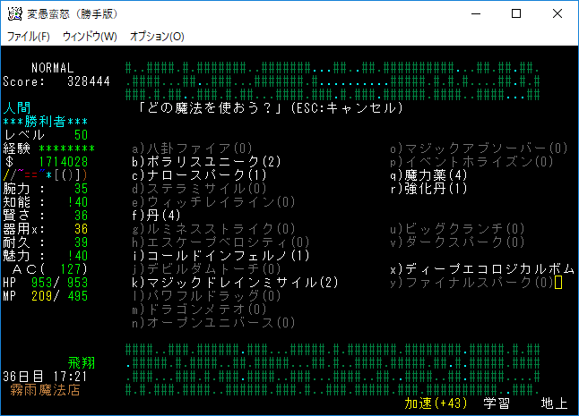 アイテムは少なめで良いでしょう。回復は自作魔法を使おう。霊酒を持ち忘れております。