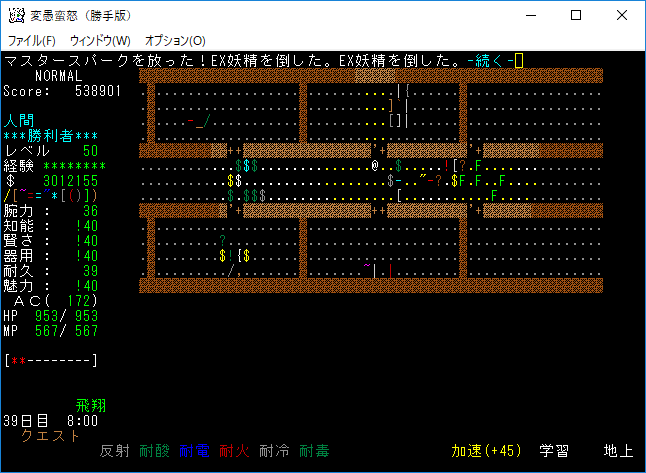 モンスター感知を唱えながら慎重に進みます。他にもユニークは登場するからね。まだこんなにEX妖精がいたのか。