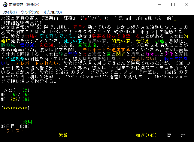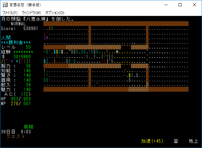変愚蛮怒東方Project勝手版のプレイ日記を始めます。輝夜への刺客クエストを楽しんでいます!『鈴仙・優曇華院・イナバ』の撃破に成功。この勢いでクエストを達成しよう。