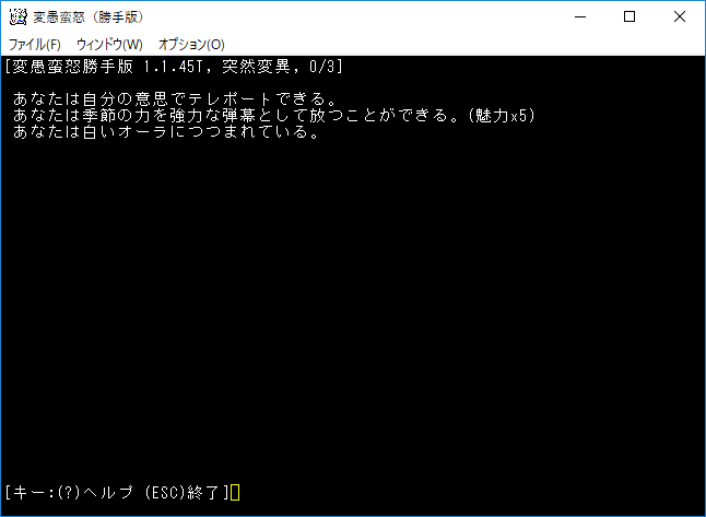 弾幕の能力とテレポート制御を手に入れた。使うことは無いだろうが良性の変異だから嬉しいよね。