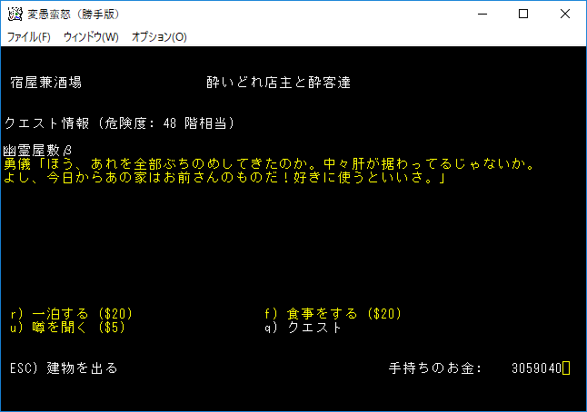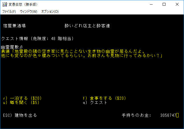 おはようございます。変愚蛮怒東方Project勝手版のプレイ日記を始めます。今回はクエスト『幽霊屋敷β』に挑戦しようかな。懐かしいクエストです。