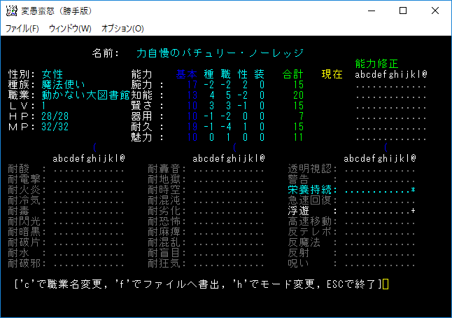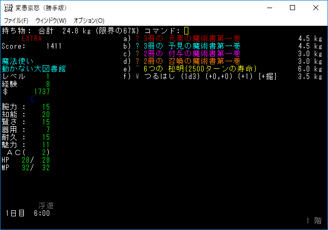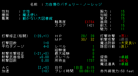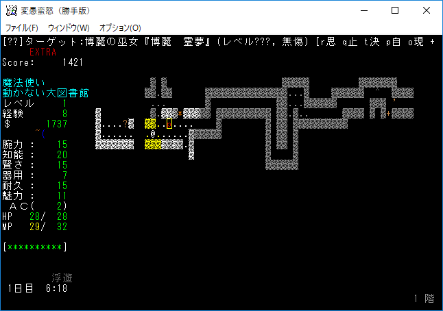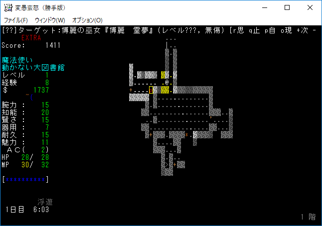 いやあ、霊夢に襲われたのはビックリした。変愚蛮怒なのにDungeon Crawlみたいな面白さがあります。うーん、プレイをしていて楽しい!