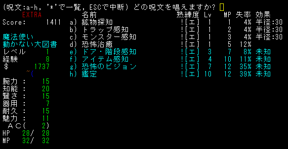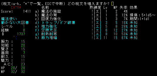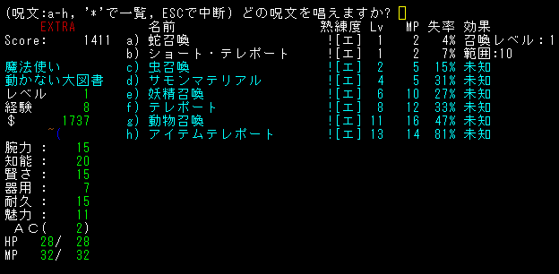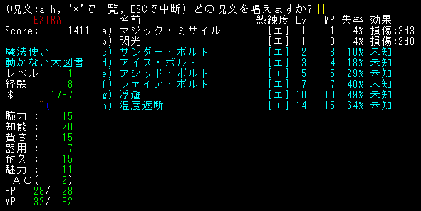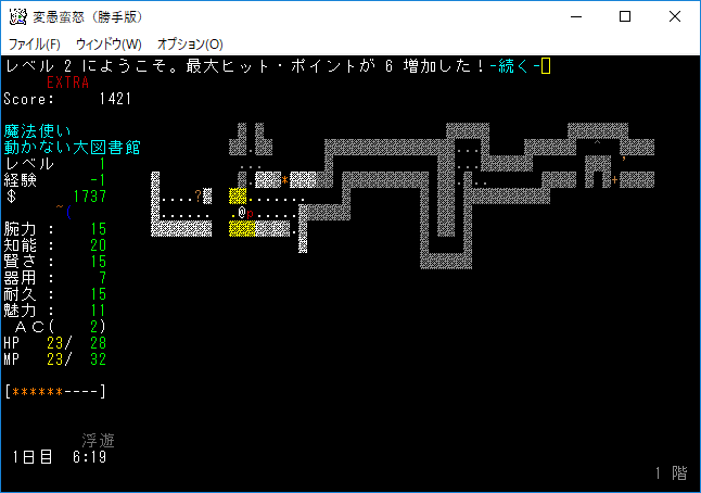 テレポート手段はない。とうぜん*破壊*もありません!マジックミサイルを連打します!魔法を撃っているうちにレベルが2に上がりました。HPが上昇するから嬉しいね!