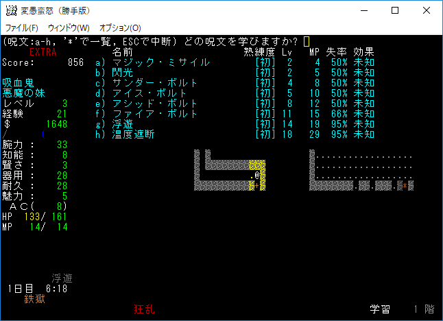プレイ中はペナルティのことなんて知らなかった。また閃光の魔法を唱えたら知能が下がってしまったよ。頭が悪くなって呪文を忘れちゃった。もう魔法を使うのはやめます!