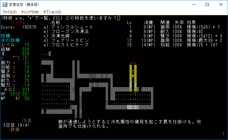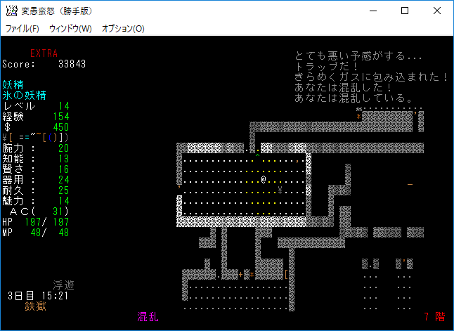 チルノちゃんの能力値だと罠が怖いです。警告を備えている装備は必須になりそうだ。魔法道具が低すぎてアイス・ボールの魔法棒すら使えなかったのは驚いた。