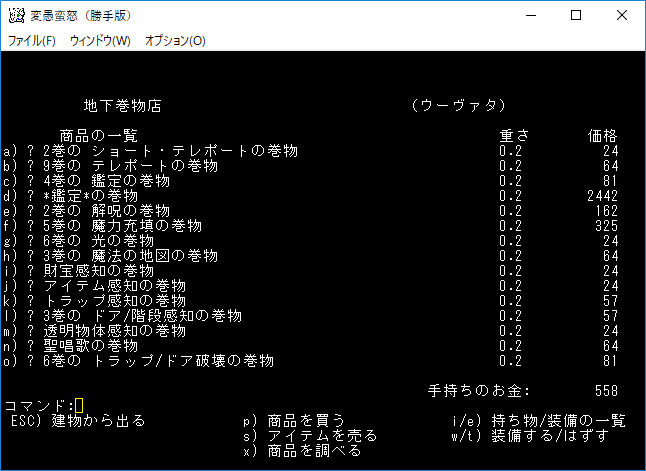 地下7階の施設は巻物店だと判明する。鑑定の巻物を買えばパンパンのザックが軽くなるなあ。解呪の巻物があれば呪われた指輪を外せます。いや、まてよ?魔力充填の巻物を買えば鑑定の杖が復活する!