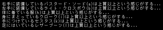 落ちている装備品を拾って簡易鑑定を実行します(時間を経過させまくる)。簡易鑑定に引っかかった装備品は全て持ち去ることにする。簡易鑑定は信頼できないこともあるみたい(たぶん)。