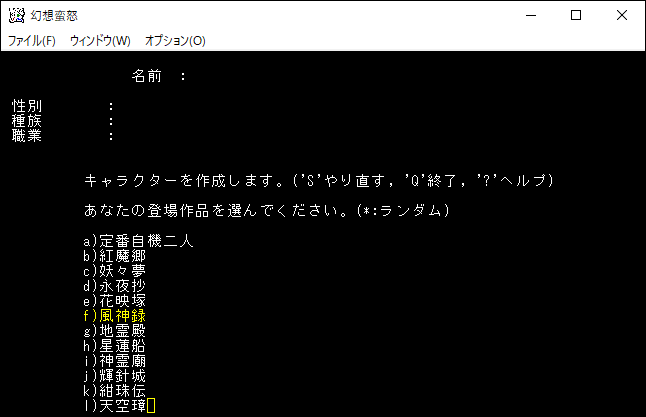 幻想蛮怒のプレイ日記を始めます。まだ難易度HARDでプレイするキャラクターを決めていません。前回は永夜抄と花映塚のユニーククラスを確認しました。今回は風神録を見ていきます。現在のプレイキャラクター候補は「霊夢、咲夜、プリズムリバー姉妹、幽々子、ヤマザナドゥ」です。
