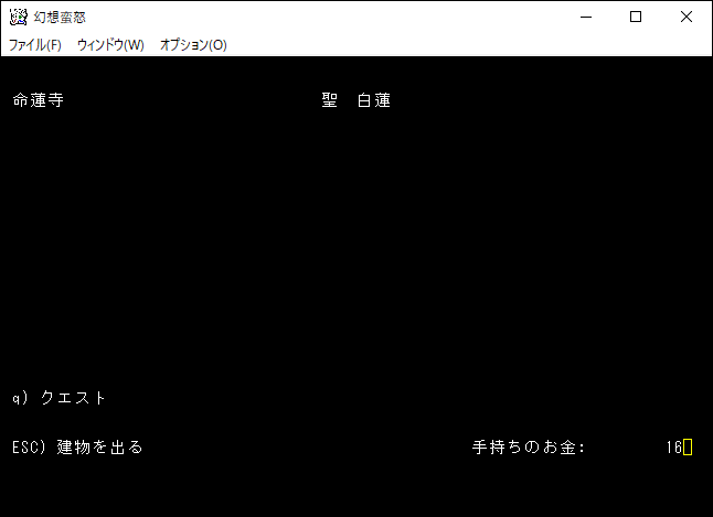 1つ目の施設は聖白蓮が主を務める「命蓮寺」だ。ここで出来ることはクエストの受領だけのようです。加奈子の場合はクエスト以外で立ち寄ることは無いだろう。