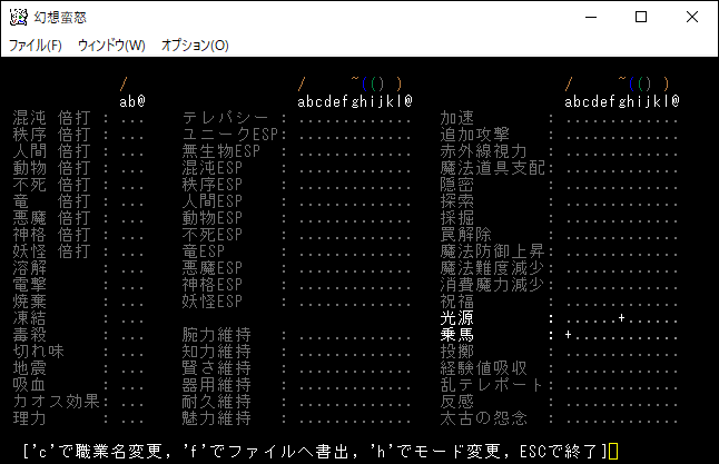 現在の耐性は上の画像。こちらはスタートしてから何も進展していない。はやく麻痺と盲目の耐性を埋めないと不安でしょうがない。こんな耐性だと次回はモンスターに負けている可能性だってある。