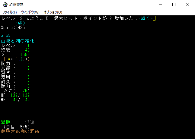 幻想蛮怒のプレイ日記を始めます。難易度HARDの八坂加奈子をプレイ中です。前回は夢殿大祀廟を探索してレベルが10になりました。今回の投稿は何をやろうかな。また無難に夢殿大祀廟を探索しようかね。