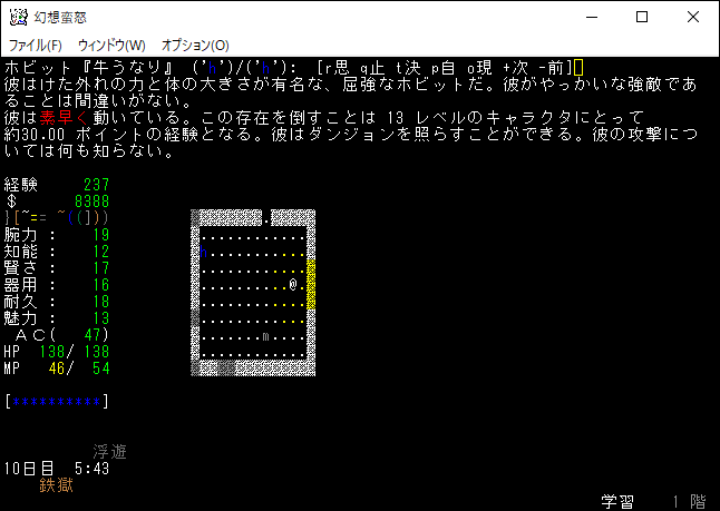 3回目の金かわスカムをしていたら、ホビット『牛うなり』を発見しました。こいつを倒すと経験値を30もくれるのか。せっかく見つけた獲物だし狩ってしまおうぜ。やっちゃいましょうよ!