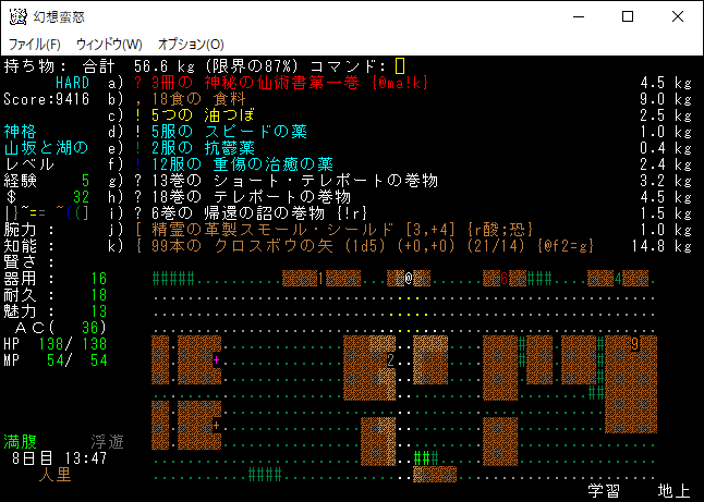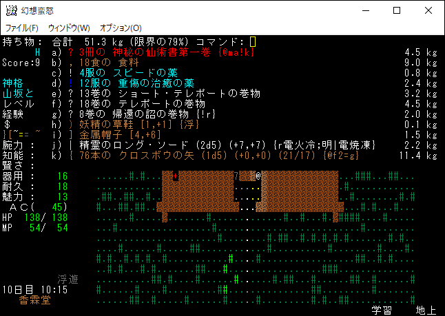 今回の投稿で向かう香霖堂は人里から遠く離れた場所にあります。道中で何度も襲撃されるからテレポートの巻物を多めに持っていこうか。荒野は強いユニークモンスターが出現したりして危険だからね。