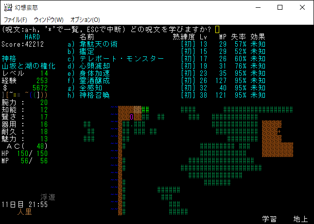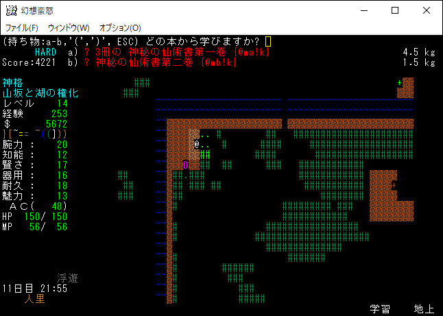 現在の加奈子は1つの呪文を習得できます。「G」を押して呪文の学習を行いましょう。そして神秘の2冊目の魔法書を選択するのだ。