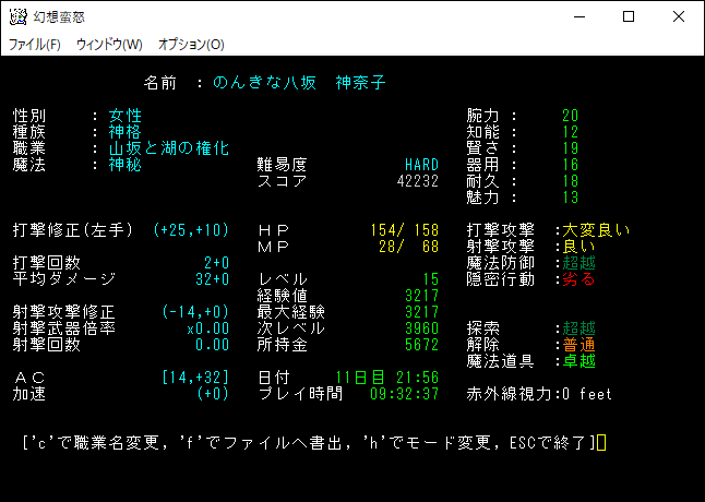 幻想蛮怒のプレイ日記を始めます。難易度HARDの八坂加奈子をプレイ中です。前回は盲目耐性の仮面を買いました。今回は麻痺耐性の取得を目指して金かわスカムをします。たぶん金かわスカムは今回で終わりになると思います。