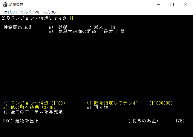 それでは鉄獄の地下1階に帰還して魔理沙に会いに行きましょう。金かわスカムの後に人里に戻りやすいよう夢殿大祀廟の帰還場所を低層にしておきました。夢殿大祀廟の地下1階に設定するつもりが間違えて地下2階になっている。