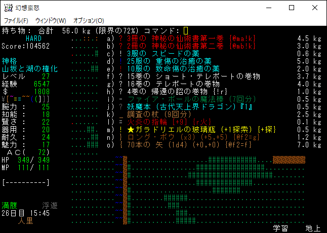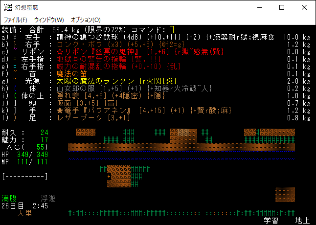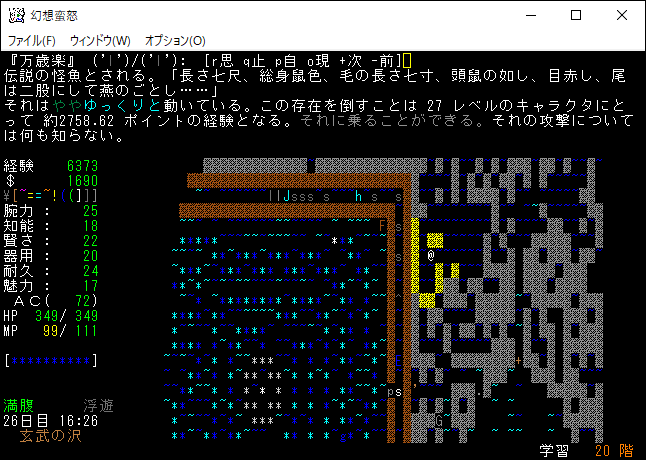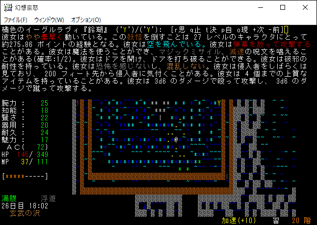 鈴瑚の調査結果は上の画像。俺はパターンを歩いているから鈴瑚に隣接して打撃攻撃はできない。ならばロングボウを撃ちまくって倒すしかないのか?いや、元素耐性が無いので、鰻のために持ってきたファイアーボールの魔法棒が通用しますね。