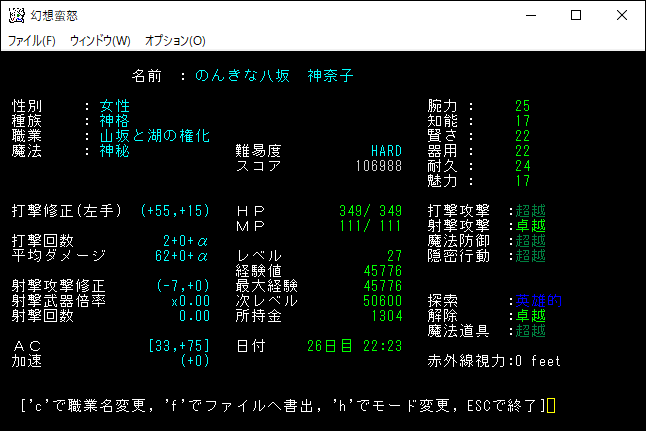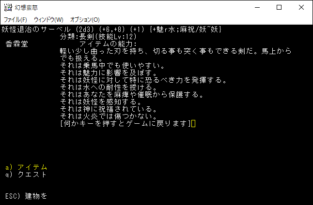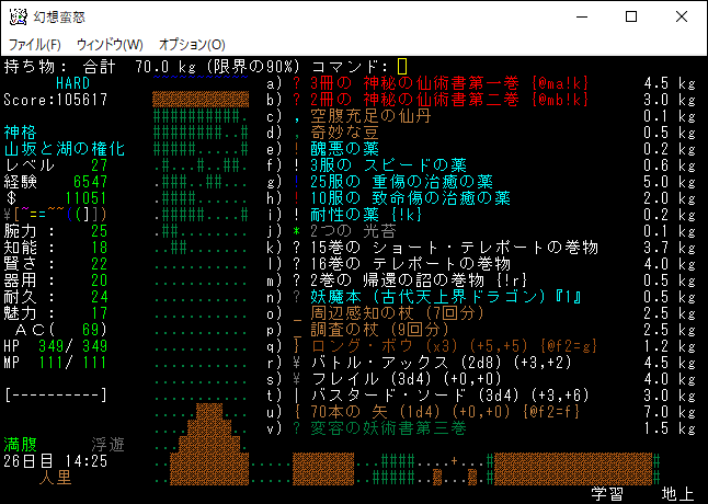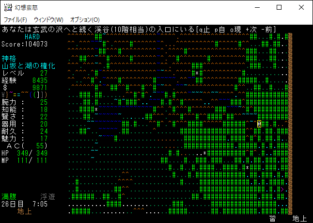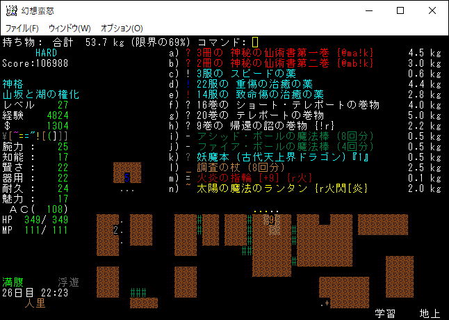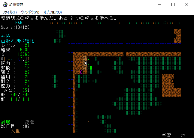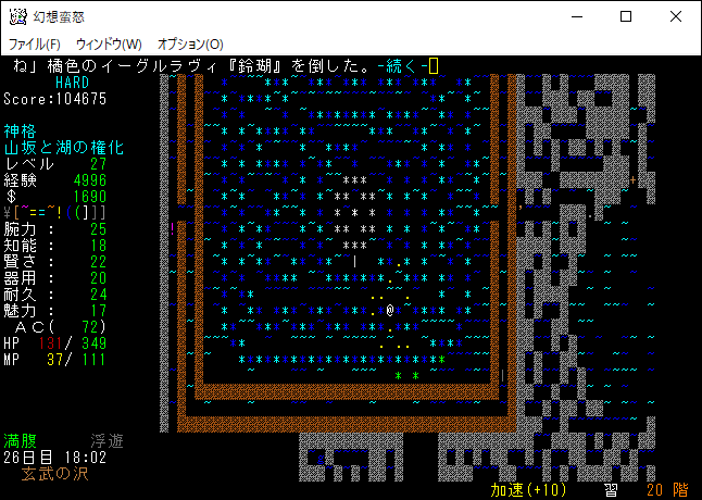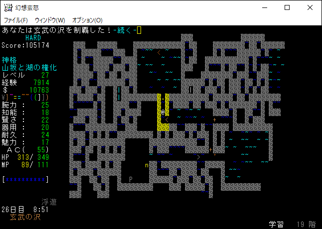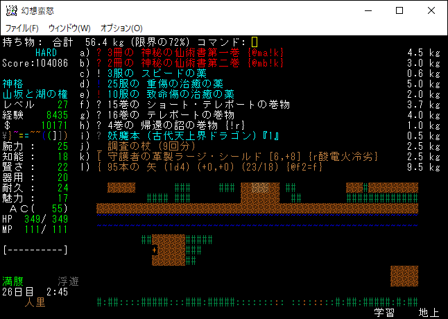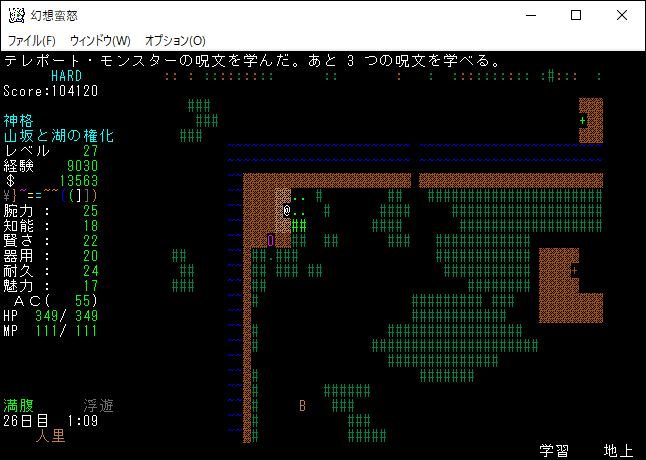 ファイアーボールの魔法棒を連発して鈴瑚を撃破しました。やつが強いユニークモンスターだったら間違いなく殺されていた。つーか、ユニークモンスターがいなくてもパターンを踏破できるかわかりません。途中で回復薬が尽きちゃうかも(泣)。