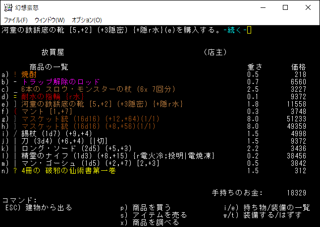 京丸牡丹は拾えなかったが所持金は増えた。ブラマを覗いたところ河童エゴの靴が販売されていたので買うことにしました。靴枠は上質の防具を装備していたから、かなり強化されたよ。ついでに耐水の指輪も購入しておきます。