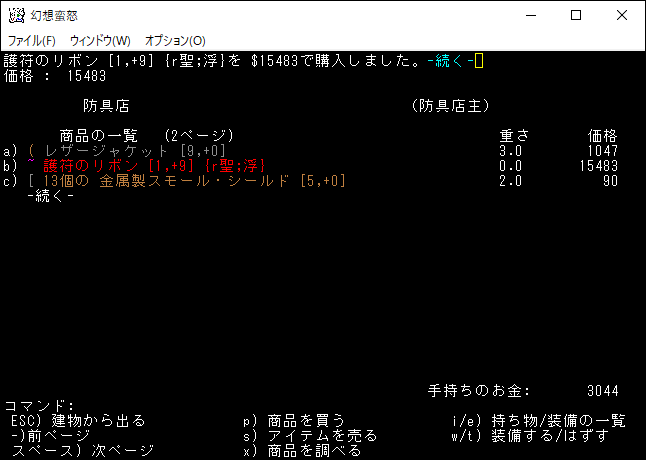 ブラマを覗いたところ破邪耐性のリボンが販売されていました。ちょっと高額だけど購入しておきます。まあ出番が来るかもしれないからいちおうね。