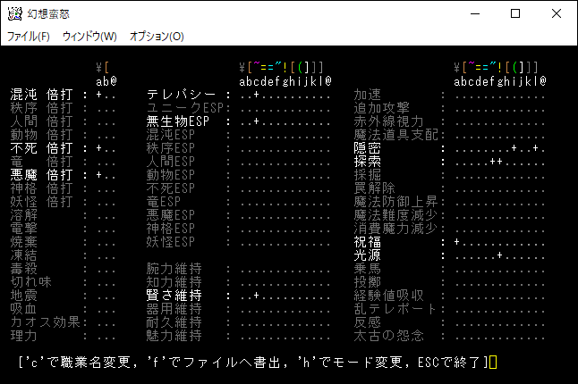 現在の耐性は上の画像。まずいことに恐怖耐性が埋まっていません。打撃重視のクラスなのに恐怖耐性が無いのは致命的だ。やっぱりサルケットスを装備するべきではなかった。次回の投稿の画像は撮影済みなので耐性パズルは次々回に行います。