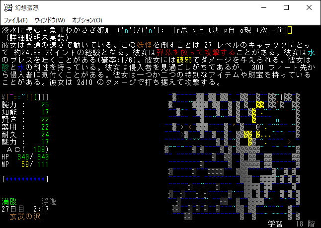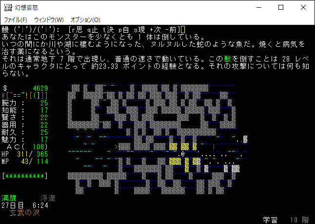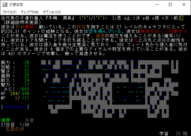 玄武の沢は地獄のようなダンジョンだ。歩きにくいし、シャチや鯨が襲撃してくるし、チョウチンアンコウのブレスで所持品がぶっ壊されたりする。ファイアーボルテックスに魔法書を焼かれたりもした。がむしゃらに京丸牡丹を探していたら、いつの間にかレベルが28に上がったようです。新しい特技を覚えたので次回の投稿にて紹介します。