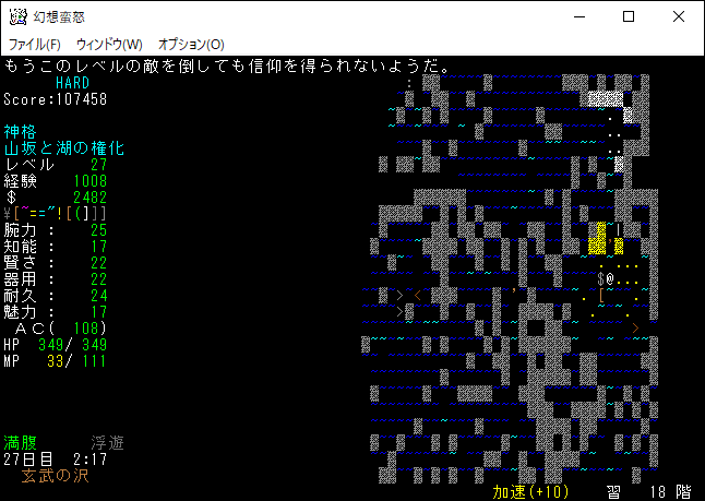 玄武の沢へ行く前に現状の確認をします。現在の信仰度は2です。俺は鉄獄の地下20階で信仰度を3に上げる予定だ。その後は地下24階のランダムクエストに挑むことになる。だけど地下24階の主がガチャピンだったら勝てるだろうか?俺は勝てないと思います。配下の古代天上界ドラゴンが2体いれば勝算があったのになあ。