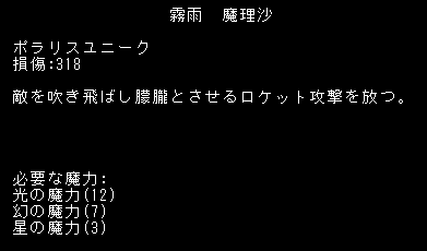 ラアルの破壊集大成への対策としてポラリスユニークを作成します。何体出てくるのか知らなかったので強力な魔法が必要だと考えた。この自作魔法は優秀だったよ。キャプチャを忘れたので以下の画像は古いもの。今は損傷400くらいになっています。