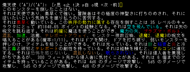 『ミカエル』という天使も強くて有名なんだって。だけど変愚蛮怒にはユニークモンスター『ミカエル』がいた気がするんだよなあ。いないっけ?忘れました。