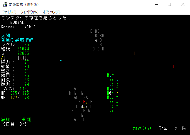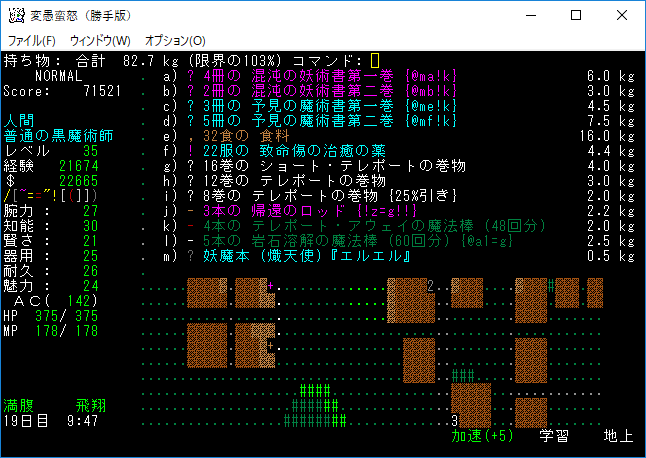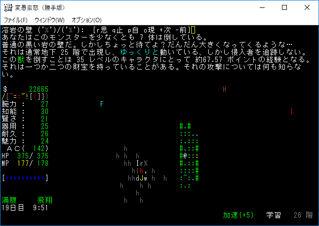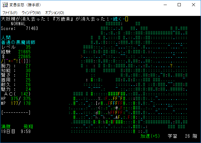 おはようございます。変愚蛮怒東方Project勝手版のプレイ日記を始めます。今回は中断をしていた『魔法の森深部』の探索を再開します。雑魚敵が多すぎて苦戦をしましたが対策はあります。